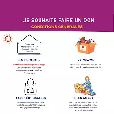 Face à l’afflux de dons, de nouvelles règles de dépôt sont mises en place : 3 sacs maximum par apport, dont 2 de textile.